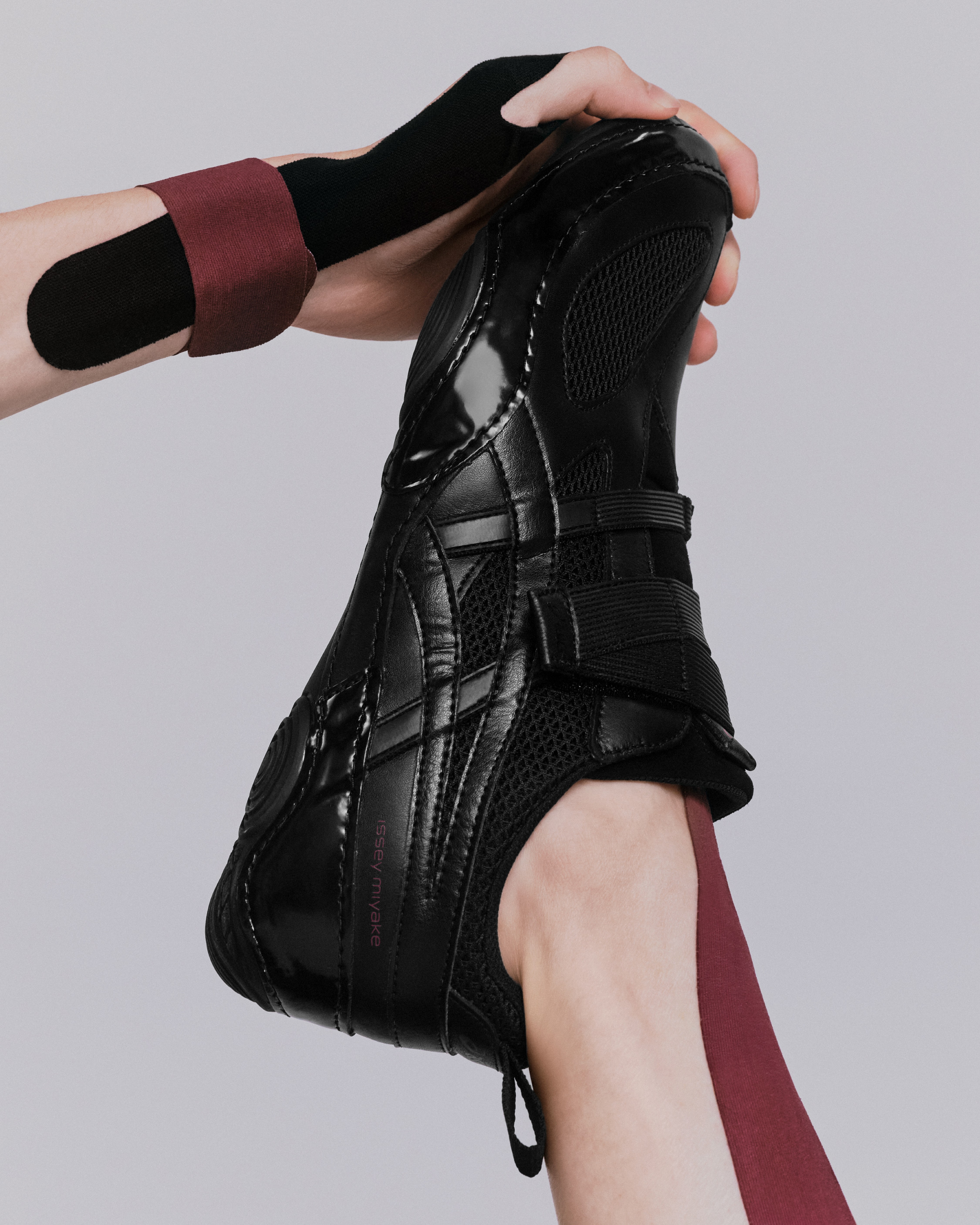 Het resultaat van deze kruisbestuiving werd voor het eerst onthuld bij de IM MEN show tijdens de Paris Fashion Week. De kern van het ontwerp is gebaseerd op een reconstructie van de bekende ‘ASICS Stripes’. Geïnspireerd door hoe deze strepen structuur en design integreren, bedacht het team van Miyake het concept van ’taping’. Net zoals sporttape het lichaam stabiliseert en beweging ondersteunt, doet deze schoen dat ook. Dit wordt visueel en functioneel vertaald door dikke, originele elastische banden die een opvallend lijnenspel vormen en de voet stevig omwikkelen.