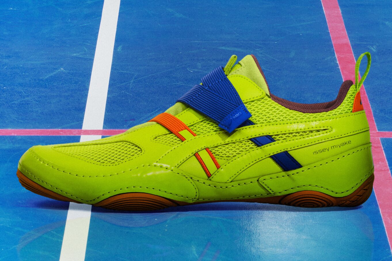 Het resultaat van deze kruisbestuiving werd voor het eerst onthuld tijdens de IM MEN show op de Paris Fashion Week. De kern van het ontwerp is gebaseerd op een reconstructie van de bekende ‘ASICS Stripes’. Geïnspireerd door hoe deze strepen structuur en design integreren, bedacht het team van Miyake het concept van ’taping’. Net zoals sporttape het lichaam stabiliseert en beweging ondersteunt, doet deze schoen dat ook. Dit wordt visueel en functioneel vertaald door dikke, originele elastische banden die een opvallend lijnenspel vormen en de voet stevig omwikkelen.