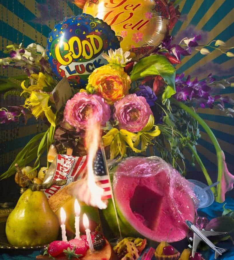 Op de foto’s zijn voorwerpen te zien als bloemen, fruit en schedels die typisch passen bij klassieke stillevens, maar ook vreemde objecten als telefoons, ballonnen, Crocs, worstjes of een wc-rol. Ga vooral ook zelf op zoek naar de reden waarom de kunstenaar juist deze voorwerpen heeft gebruikt. De foto’s zijn van 23 februari tot 24 maart te zien bij Fred Torres in New York.