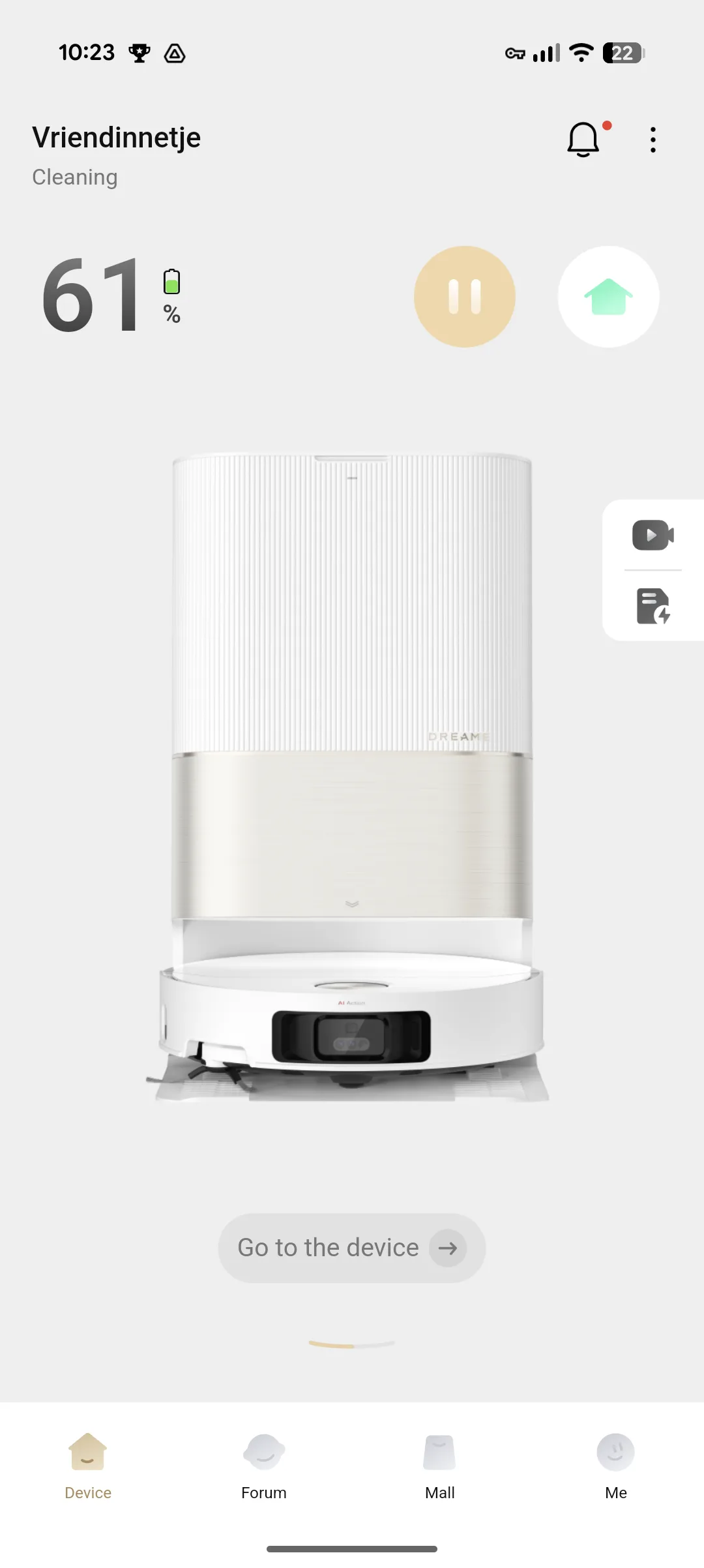 Uiteraard is de app te koppelen met de diverse digitale assistenten, dus kon ik direct beginnen met een ‘hey Google, stofzuigen’. Daarnaast is de Dreame ook heel bewust van zijn omgeving dankzij de camera en slimme sensoren. Zo plaatsten wij na een tijd een kleed in de woonkamer op de plek waar eerst gedweild werd. De Dreame pakte dit automatisch op en markeerde dit op de kaart in ons huis met als gevolg dat de X50 Ultra dweilt en zuigt in de kamer, maar dit stopt bij het kleed en hier overgaat naar een extra zuigkracht-modus.