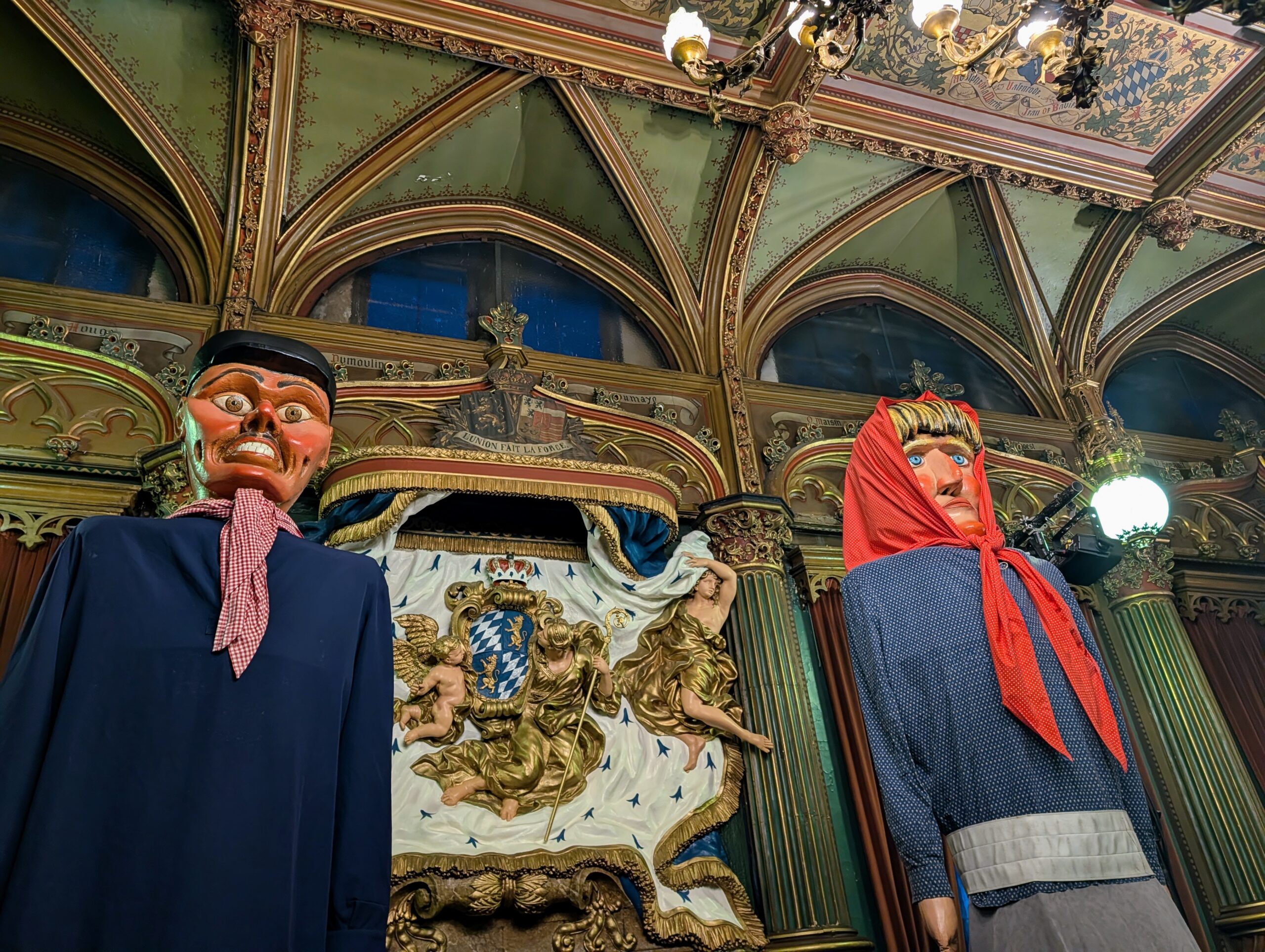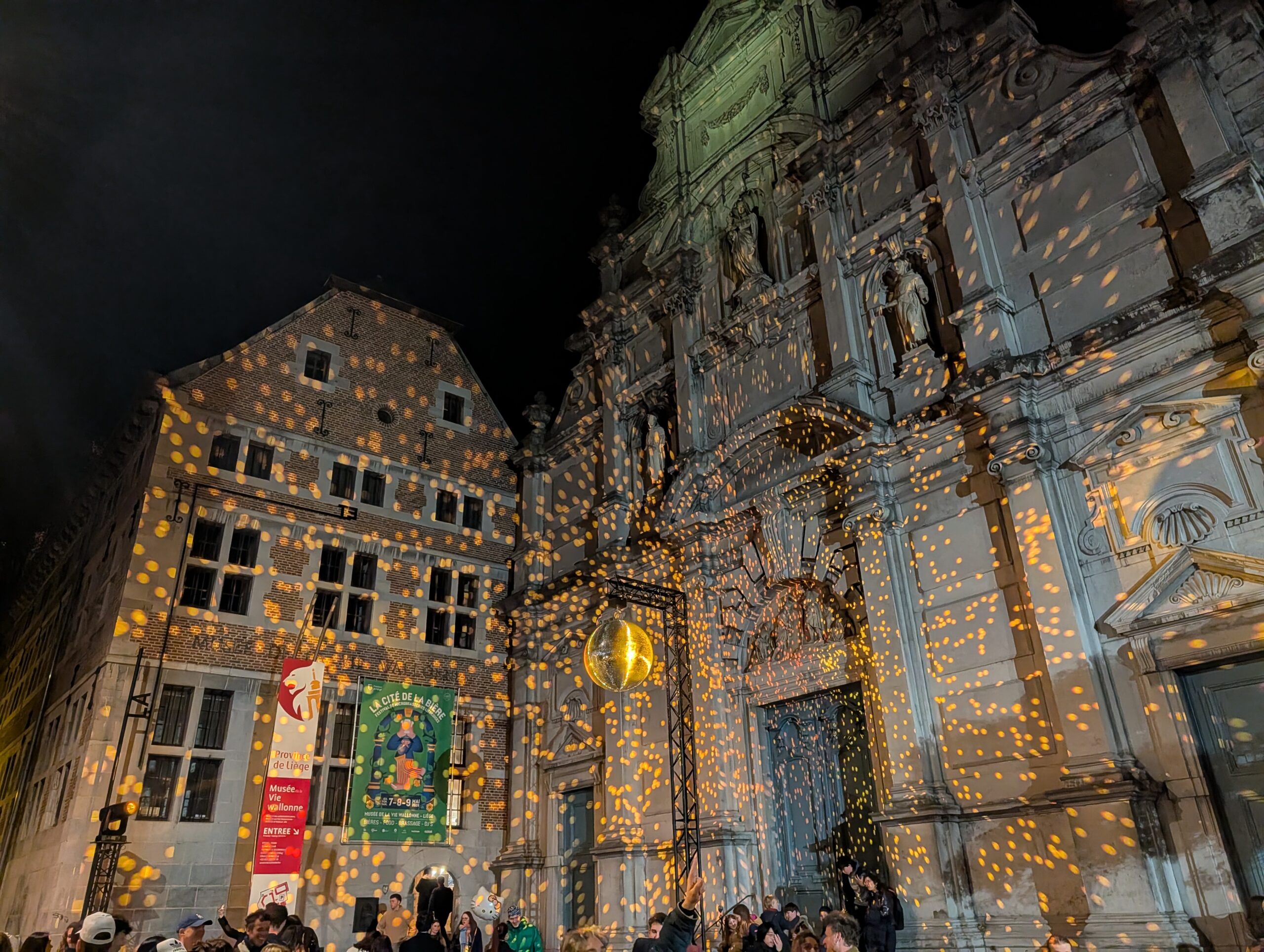 Wanneer het buiten bijna donker is, wandelen we eerst richting Paleis van de Prins-bisschoppen. Luik heeft nog steeds het imago dat het een saaie en lelijke stad is, maar niets is minder waar. De straatjes waar we doorheen lopen staan vol met prachtige oude panden. Als we vervolgens door een poort het binnenplein ( Cour d’Honneur) van het paleis binnenlopen, wanen we ons in het rijke verleden van deze Waalse stad.