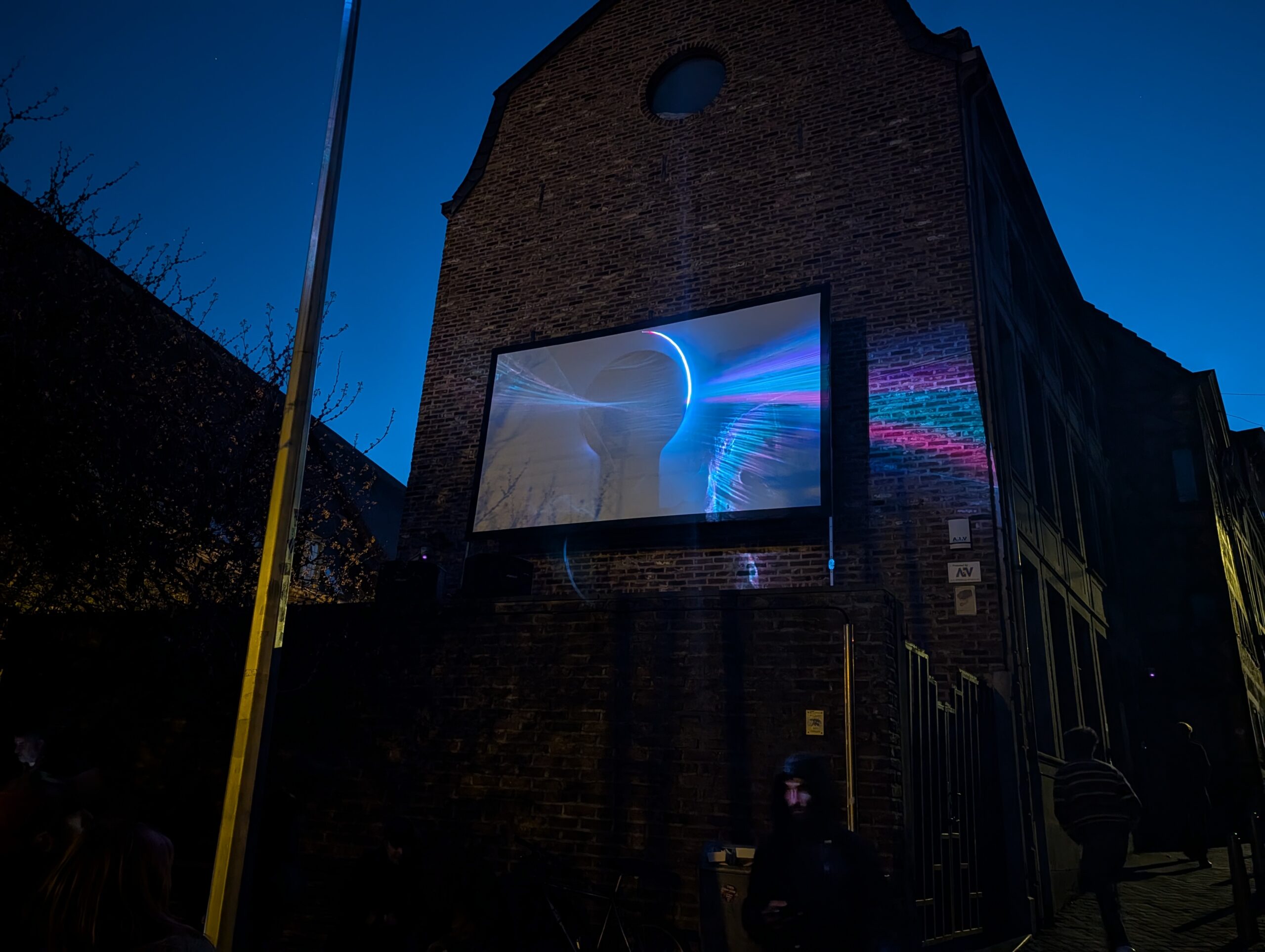 We lopen terug richting de voet van de Montagne de Bueren. Onderweg bruist de stad. Muziek, drank, eten en vriendschappen zijn belangrijker dan de kunstwerken die er te zien zijn. Toch willen we alles gezien hebben. Bijvoorbeeld de simpele, maar effectieve discobal die aan de gevel van de Espace Saint-Antoine hangt. Of een projectie van de maan op de zijkant van een gebouw aan de Place Crève-Coeur, waar het vooral heel gezellig is vanwege de DJ en het craft beer bij Le Saint Bar.